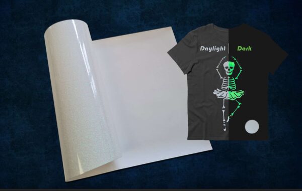 Craft Machine HTV Glitter vinyl- Glow in the dark Glitter White – Size10″ x 20″ (25 cm x 50 cm)