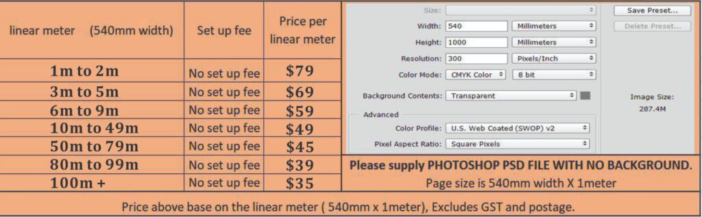 1) The cost of labour needed to layout the file on a big roll for final printing. after layout, we need to RIPPING the file (A raster image processor) to or commercial printer which takes around half hour to upload.